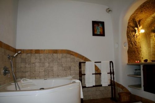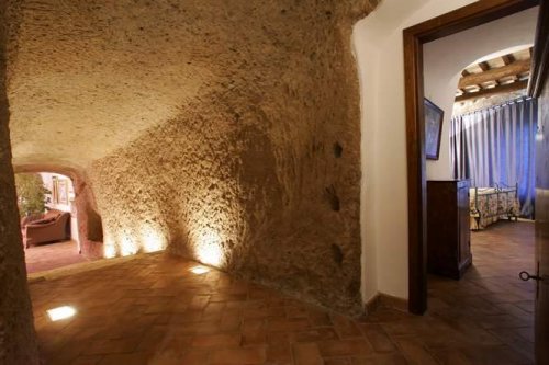 - La camera dei Pensatori è separata dal resto dell’abitazione dal suggestivo tunnel scavato nella roccia, finemente arredata con mobili d’antiquariato è resa ancora più speciale dalle nicchie e cavità scavate nel tufo.