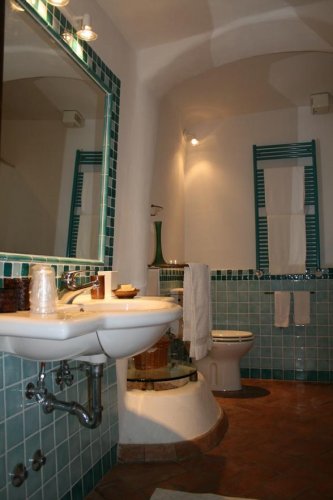 Dotata di bagno privato con box doccia in muratura, rifinito con particolari ceramiche.