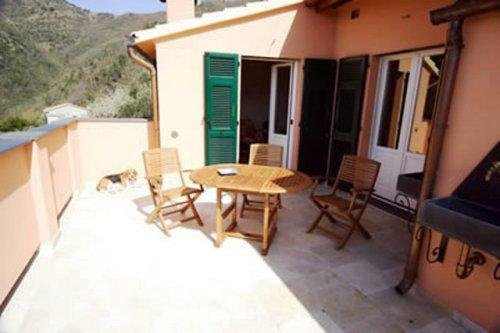 Ce gîte rural situé à l'intérieur d'une ancienne maison de campagne parfaitement restaurée bénéficie d'une vue magnifique sur la mer jusqu'à la baie de Portofino.
