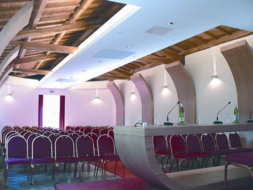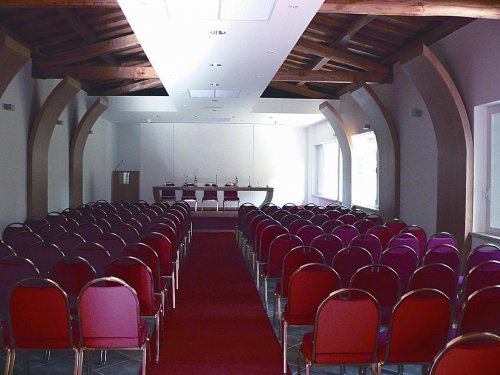 - la salle des congrès peut accueillir jusqu'à un maximum de 120 personnes. Elle dispose de micros, d'un amplificateur, d'un vidéoprojecteur, d'un lecteur DVD, d'un grand écran et d'un éclairage naturel.