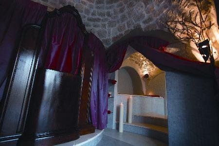 - Suite avec zone séjour, salle de bain privée avec baignoire et cabine douche pour 2 personnes et bain turc ;