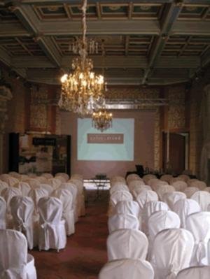 La salle de congrès, située dans les écuries, est équipée d'installations audiovisuelles modernes et peut accueillir jusqu'à un maximum de 220 personnes.