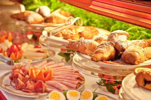 La Salle pour les petits déjeuners, avec son riche buffet, respecte l'élégance et le style du Relais.