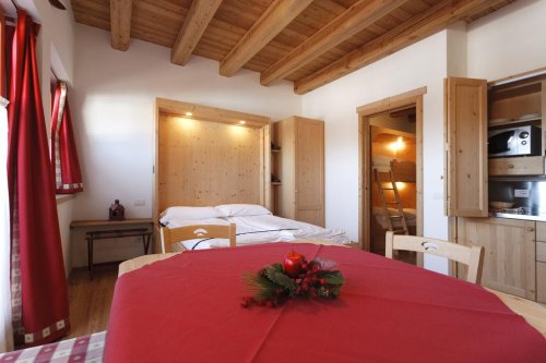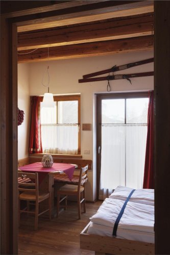 Gli ospiti vengono accolti in ambienti completamente arredati in stile zoldano, dove è il larice delle Dolomiti a farla da padrona. Le linee architettoniche riprendono le differenti soluzioni che il tabia (vecchio fienile) ha assunto nei secoli nella Val di Zoldo.