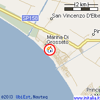Percorrere l'A12 immettendosi poi nell'Aurelia direzione Livorno. Uscire al casello di Grosseto Sud. Seguire le indicazioni per Marina di Grosseto.