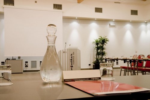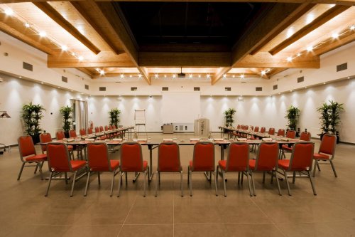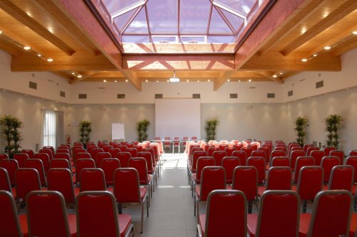 La salle de réunion pouvant accueillir jusqu'à un maximum de 230 personnes est dotée d'un éclairage naturel et d'un plafond en verre en forme de pyramide.