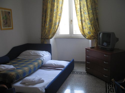 - l'appartement Augusto pour un maximum de 6 personnes est composé d'une chambre avec un grand lit double, d'une chambre avec deux lits une place, d'un séjour avec canapé-lit deux places ou deux lits une place, d'une cuisine aménagée, d'un four électrique et d'une salle de bain privée avec douche.