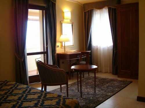 La structure réceptive, récemment construite, édifiée à l’intérieur du parc et introduite d’une manière harmonieuse dans un des paysages les plus beaux et les plus suggestifs des douces collines de Pesaro, est en mesure d’offrir l’hospitalité en ayant tout type de service dans des milieux de prestige. La disponibilité totale est de 35 chambres riches de confort, insonorisées et pourvues d’un système de climatisation autonome, TV en couleurs satellite, connexion Wi-Fi à Internet, coffre-fort, mini-bar, salle de bains privée avec sèche-cheveux, set de courtoisie.