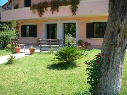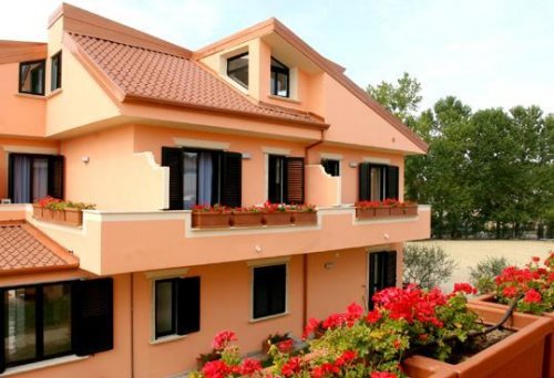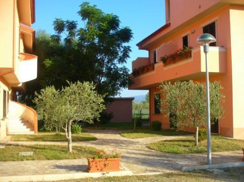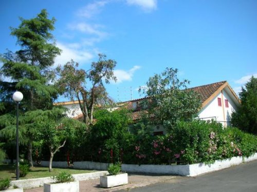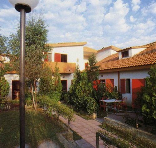 La résidence hôtelière au contraire se trouve à 200 m de la mer. Elle est composée de petites villas disposées en rang avec petit jardin privé.