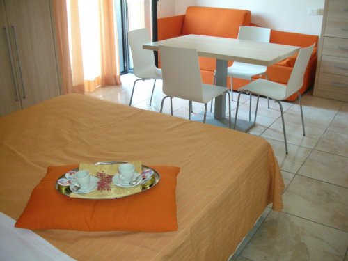 - le studio d'une superficie de 27 m² et pouvant accueillir jusqu'à un maximum de 4 personnes est composé d'un coin-cuisine, d'un grand lit double, d'un canapé-lit deux places, mais aussi d'un petit jardin au rez-de-chaussée ou d'un balcon au premier étage.
