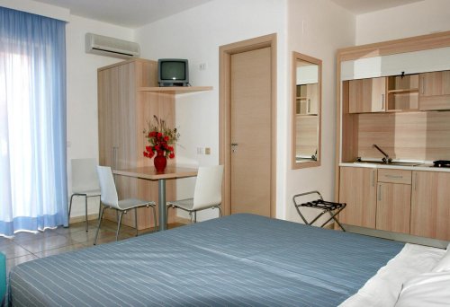 L'hôtel situé à 400 m de la mer dispose de chambres avec coin-cuisine (sur demande).