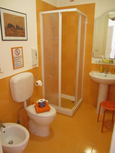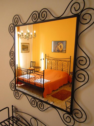 - Camera Mandarino ha un letto matrimoniale e un singolo. Il suo colore distintivo è mandarino, che occupa la parete del letto; il suo stile è classico, caldo ed accogliente, adatta per le famiglie. Di colore mandarino è anche il servizio, grande 3,7 mq, completo di lavabo, doccia, WC e bidet, servizio appena ristrutturato.
