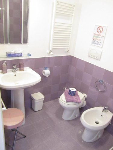 - Camera Lavanda (22 mq) con letto matrimoniale e possibilità di letto aggiuntivo. Il suo colore distintivo è lavanda, che occupa la parete del letto, il suo stile è contemporaneo, moderno e funzionale. Di colore Lavanda è anche il servizio, grande 3,4 mq, completo di lavabo, doccia, WC e bidet.
