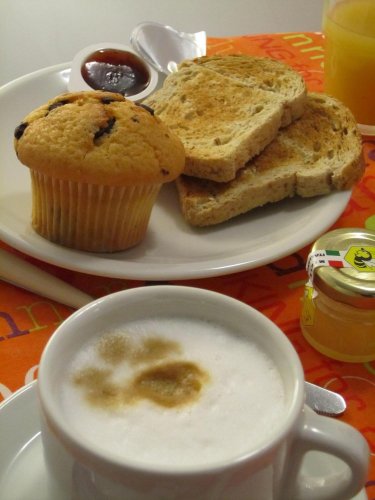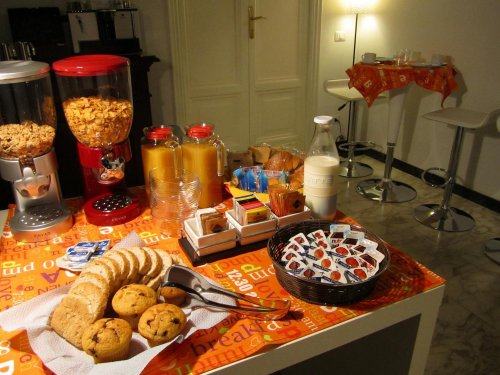 La zona ingresso è adibita, nelle ore dalle 8:30 alle 10:30, a zona colazione continentale a buffet, dove l'ospite può prepararsi la colazione autonomamente ma comunque supportato dal personale del B&B.