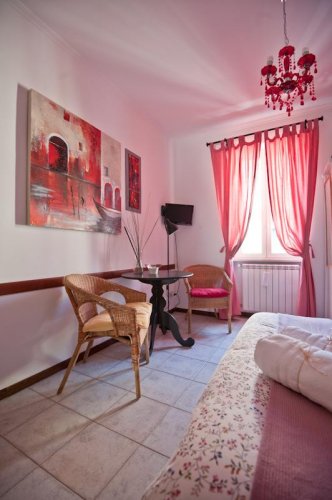 - Camera tripla ben arredata e accogliente, con TV color, connessione a Internet, piccolo disimpegno, bagno esclusivo, terrazzino privato che si affaccia sul giardino e vista sui castelli romani.