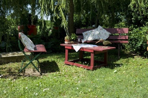 Il grande prato che circonda la casa è provvisto di giochi per bambini. Gli animali domestici sono i benvenuti.