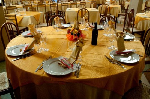 Il ristorante dell'agriturismo presenta 400 posti a sedere e serve piatti tipici della cucina siciliana a pranzo e cena.