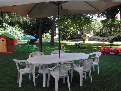 A disposizione della clientela un ampio giardino con giochi per bambini, piscina con idromassaggio e biciclette di cortesia ad uso gratuito.