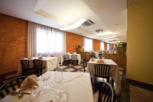 L'ampia sala Ristorante ha una capienza massima di circa 90 posti e offre il servizio banchetti e ricevimenti.