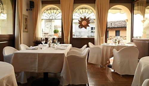 Storico punto di riferimento sulla piazza di Asolo, l'hotel ha ripreso vita grazie a un sapiente restauro, terminato nel 1996, che ha riportato l'antica struttura al suo aspetto originario.