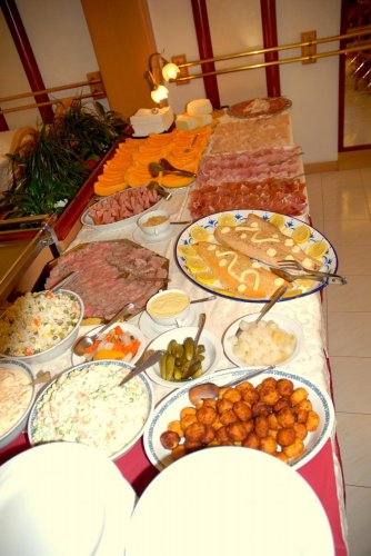 La cucina, curata dai proprietari, propone specialità italiane e tipiche regionali, colazione a buffet e buffet di verdure a pranzo e a cena.