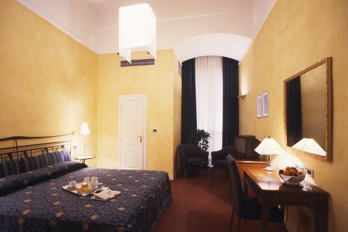 L'hotel dispone di camere confortevoli e tranquille la cui dotazione standard prevede: TV color satellitare con pacchetto Sky Cinema - Sky Sport e Pay TV, aria condizionalta, telefono diretto, accesso rapido a Internet, frigobar, bagno privato con asciugacapelli.