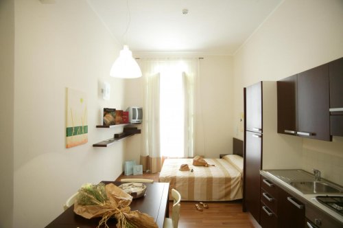 Il monolocale è costituito da zona giorno con cucina e letto matrimoniale (o 2 letti) in ambiente unico, bagno privato.
