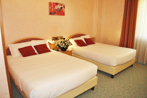 Le camere Triple "Family" sono composte da 2 letti matrimoniali .
