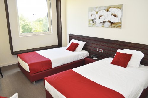 Le 114 camere sono molto spaziose e dotate di ogni confort come TV color satellitare, Sky TV, connessione Wi-Fi a Internet, frigobar, telefono con linea diretta, bagno privato con asciugacapelli.
