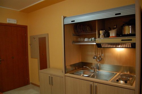 Le camere, attrezzate di angolo cottura a scomparsa, sono munite di pentole e stoviglie (servizio a pagamento euro 5 al giorno) e provviste dei migliori comfort per un soggiorno piacevole in totale autonomia.