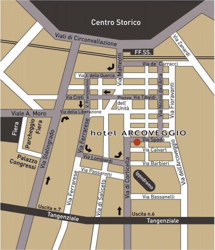 Imboccare successivamente la Tangenziale fino all'uscita 6, proseguire in direzione Centro per circa 1 km. Svoltare alla terza traversa a destra dopo l’Ippodromo.