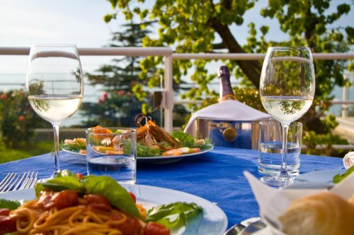 Il ricco menù è accompagnato da un'ottima selezione di vini da degustare anche come aperitivi o durante il dopocena, apprezzando lo scenario offerto dal Golfo di Napoli.