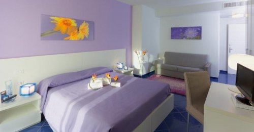 Le 40 camere moderne e funzionali sono state concepite per garantire agli ospiti una vacanza confortevole e rilassante, dotate di TV color satellitare LCD, aria condizionata, telefono con linea diretta, cassetta di sicurezza, frigobar, balcone, bagno privato con asciugacapelli.