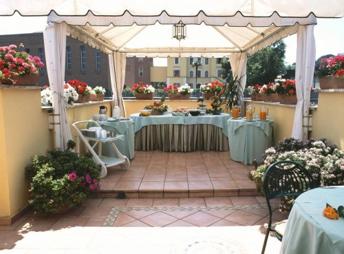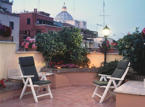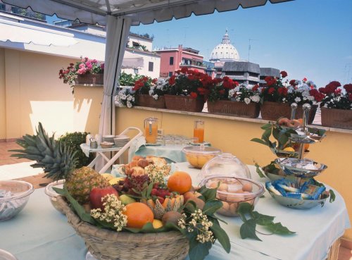 In estate la prima colazione a buffet viene servita nel Roof Garden con vista sulla Cupola della Basilica di San Pietro.