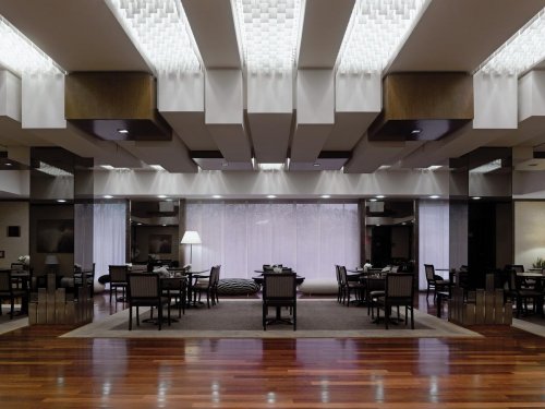 La Lobby dell'hotel si distingue per gli arredi elegantemente "retro", creando la giusta atmosfera per sorseggiare comodamente un drink in compagnia.