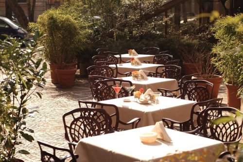 Nei mesi estivi, è possibile gustare i piatti della cucina romana nel patio e la colazione continentale a buffet è servita nell'apposita sala dalle ore 6.30 alle ore 11.00.