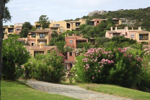 La struttura è composta da un borgo con un insieme di piccoli e bassi edifici con volte e decori nel tipico stile locale con vista sulla baia dislocati su una superficie di 50.000 mq e dista soli 2 km dalla rinomata Porto Cervo.