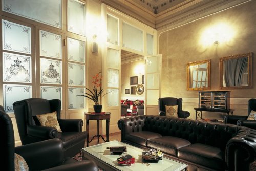 Gli ambienti comuni sono arredati in modo raffinato nel rispetto del contesto di origine e dell’atmosfera che rimanda a un passato fastoso.