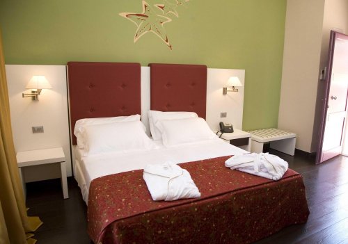 La struttura dispone di comode camere, dotate di TV color satellitare, Pay TV, aria condizionata, telefono con linea diretta, frigobar, cassetta di sicurezza, terrazzo, bagno privato con doccia a colonna di tipo circolare e asciugacapelli.