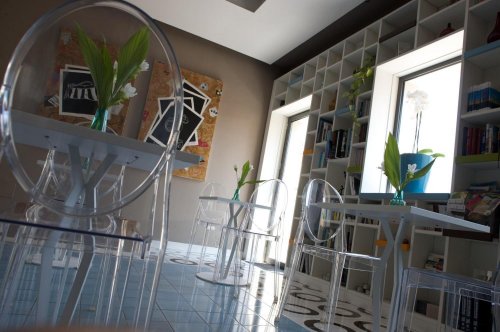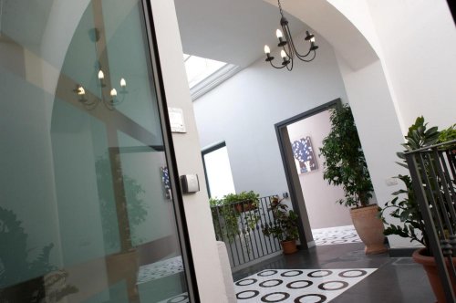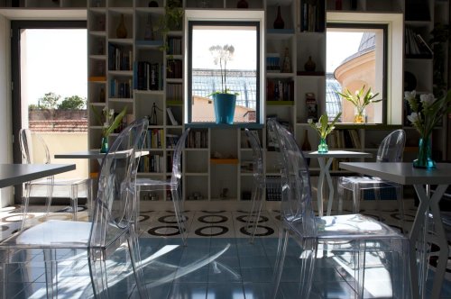 Gli esclusivi ambienti sono sapientemente resi unici con opere di giovani artisti contemporanei che si fondano in una suggestiva amalgama di contrasti con i particolari di design degli interni e l'architettura tradizionale del palazzo storico.
