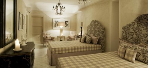 Ciascuna camera presenta arredi unici e personalizzati con mobili e ceramiche d’autore.
