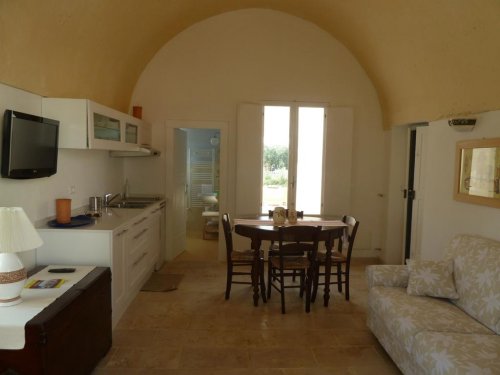 L’appartamento di Mietta è composto da salotto, camera con letto matrimoniale e due letti singoli, pavimento in “chianche” (pietre caratteristiche della zona), bagno privato con doccia.