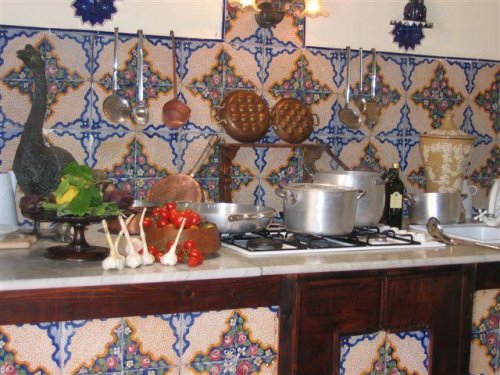 Al mattino la colazione è servita nella cucina settecentesca decorata con le antiche "riggiole" napoletane.