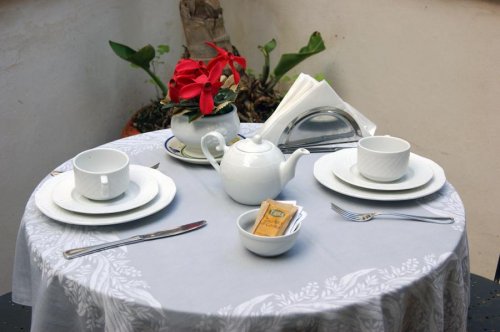 Dispone di gazebo e sala colazione, arredata con cura, dove viene servita la colazione tipicamente mediterranea dal personale attento e cortese del B&B.