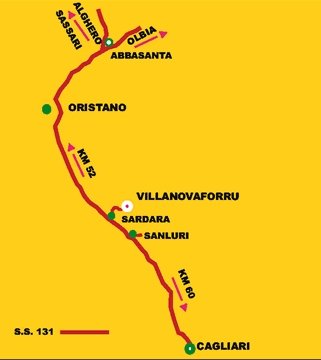Da Sassari / Olbia percorrere la SS 131 fino al bivio di Villanovaforru.
