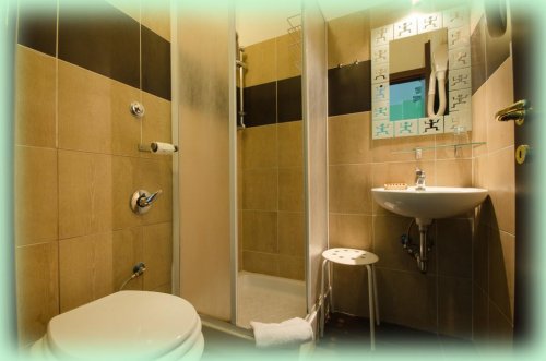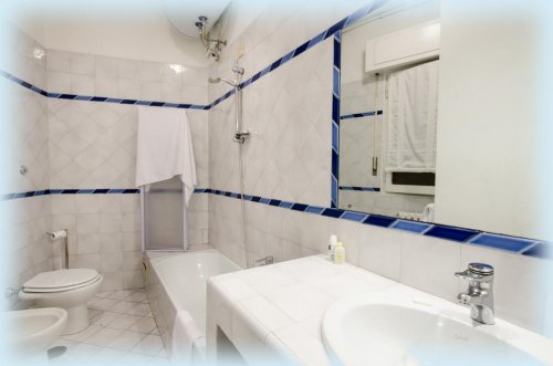 Ogni stanza dispone di pavimenti in parquet, TV color satellitare, aria condizionata individuale, frigobar (con acqua gratis), bagno privato con asciugacapelli, biancheria e set di cortesia.