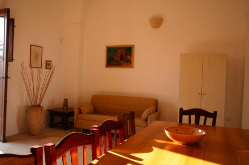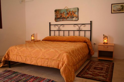 A2 - Appartamento di 40 mq adatto a famiglie o gruppi di 3 persone, con cucina abitabile, frigorifero, tavolo, sedie, camino in pietra leccese, camera matrimoniale (con possibilità di aggiungere 1 o 2 letti singoli), armadio, impianto di climatizzazione, TV color, accesso al cortile, bagno privato.