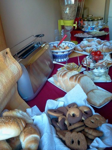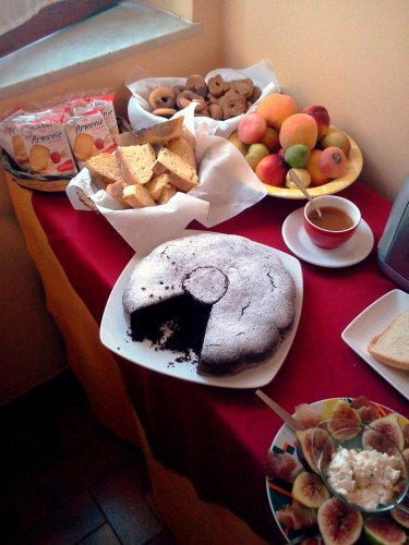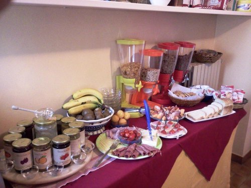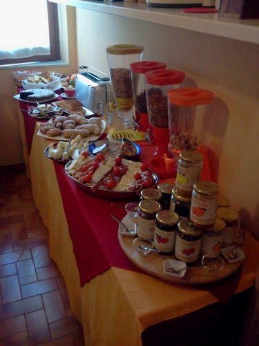 La colazione viene servita ogni mattina dalle ore 7.30 alle ore 10.30 con croissant caldi, pane, fette biscottate, latte, caffè, cappuccino e thè, succhi vari o spremute d'arancia, yogurt, marmellate miste e biologiche, miele, cereali, biscotti, frutta, toast, formaggi e salumi. Su richiesta preventiva viene servito anche il tipico english breakfast.