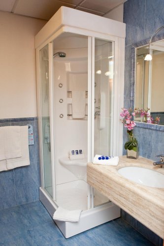 L’hotel dispone di 50 camere insonorizzate dotate di aria condizionata, bagno privato con asciugacapelli, frigobar, connessione ADSL a Internet, TV color satellitare e Pay TV.