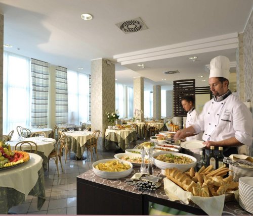 Gli chef propongono ogni giorno una grande varietà di antipasti, verdure, pasta fatta in casa, pesce fresco dell’Adriatico, carni e formaggi dell’entroterra.